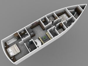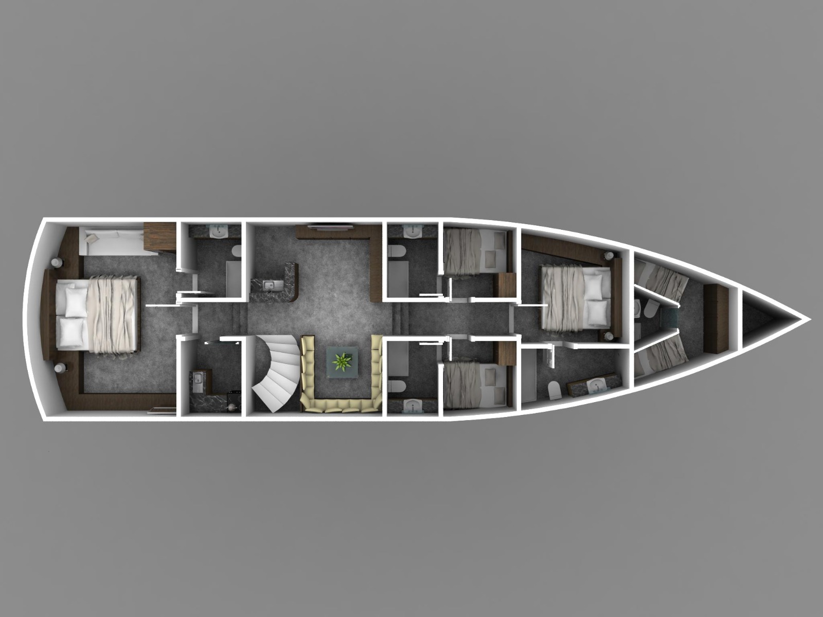 - Gesamtkabinen für Gäste: 2 Master-Kabinen, 2 Standard-Kabinen für 8 Personen